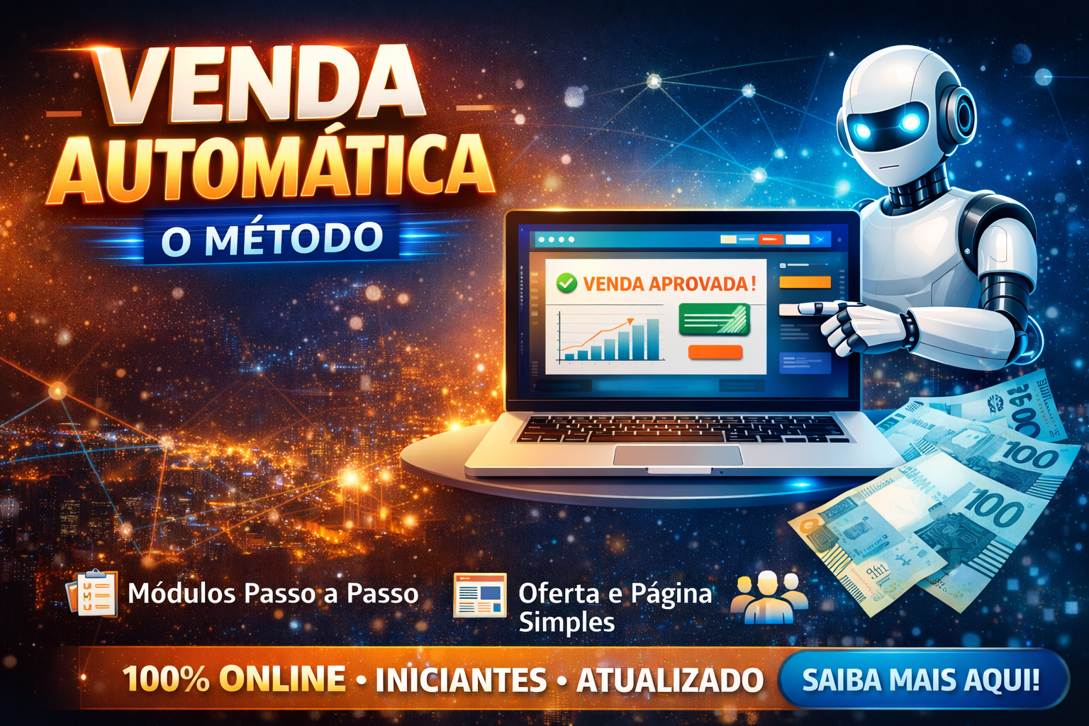 Venda Automática – O Método é um treinamento online que ensina, passo a passo, como criar um sistema de vendas automático, estruturado para funcionar de forma previsível e escalável.